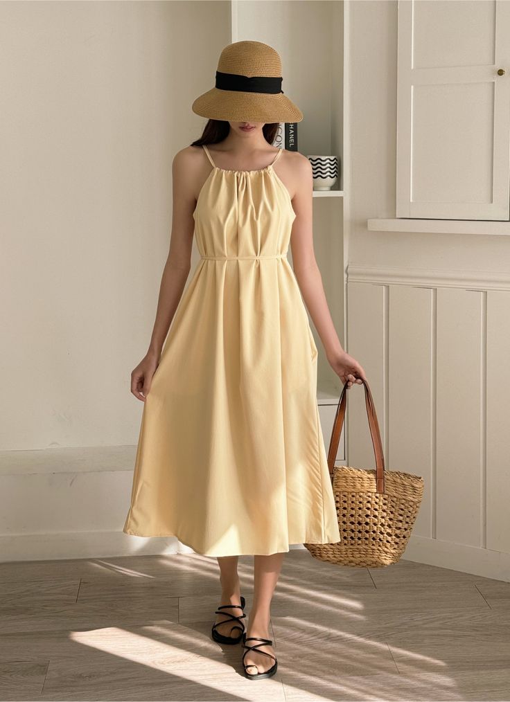| 롱 원피스 | 스트랩 샌들 | 라탄백 | 여성스러운 데이트룩 |